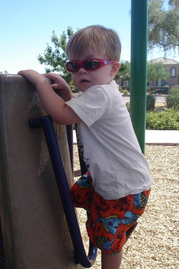 With the temperature reaching 106 that afternoon, Mark and I enjoyed hanging out in at the shaded picnic tables next to the park and splash pad while the boys played. With the heat being dry heat, the shade actually makes a big difference and the heat can be quite tolerable. Noah and Lincoln are getting to be such cute little buddies with each other (when they want to be) and it was just a lot of fun to hang out and watch them together.