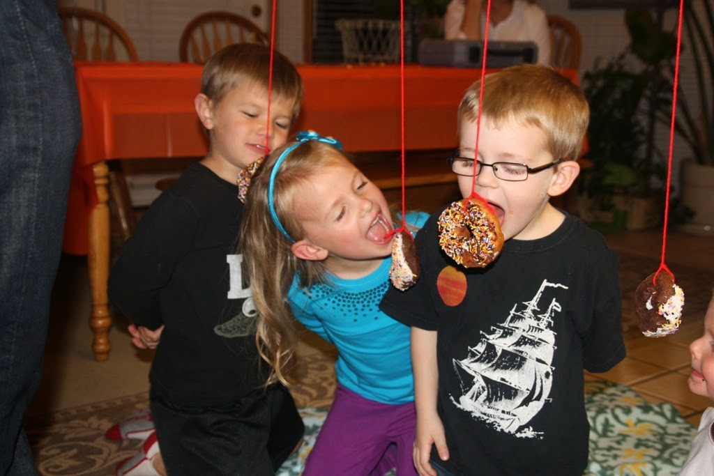 We left the kids' costumes on for the first few games. Like this one. Pumpkin bowling!